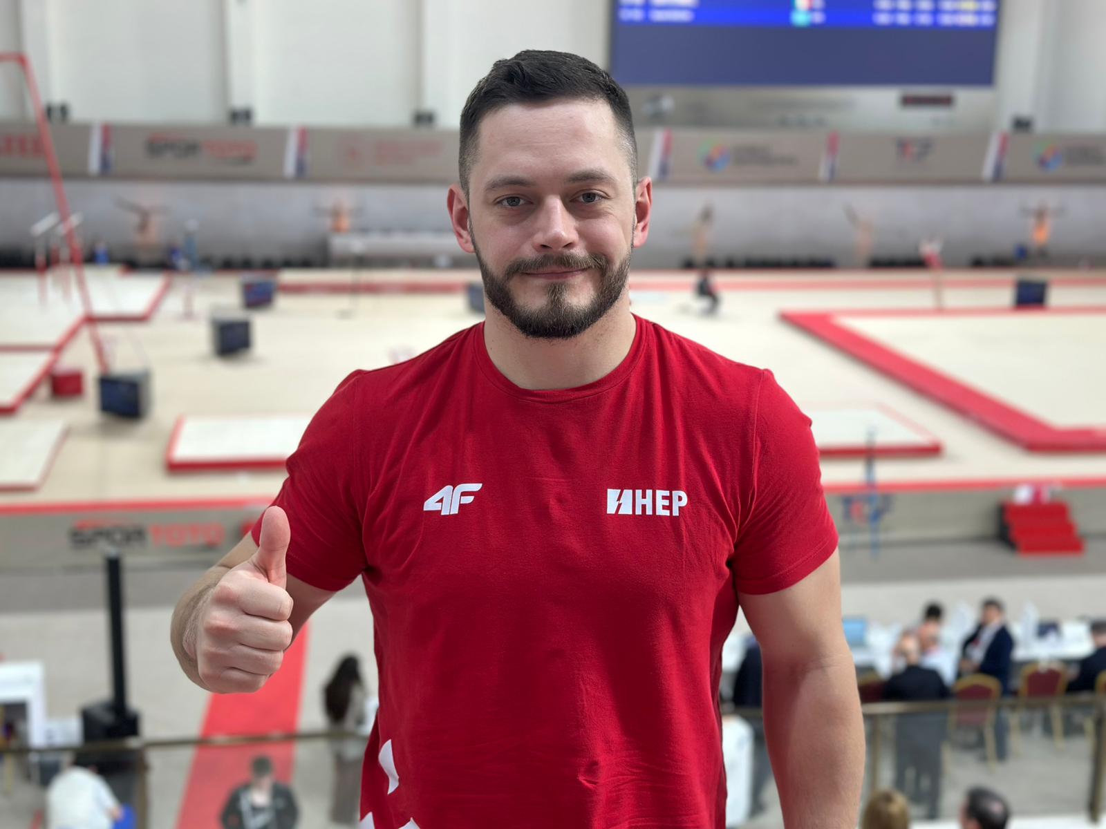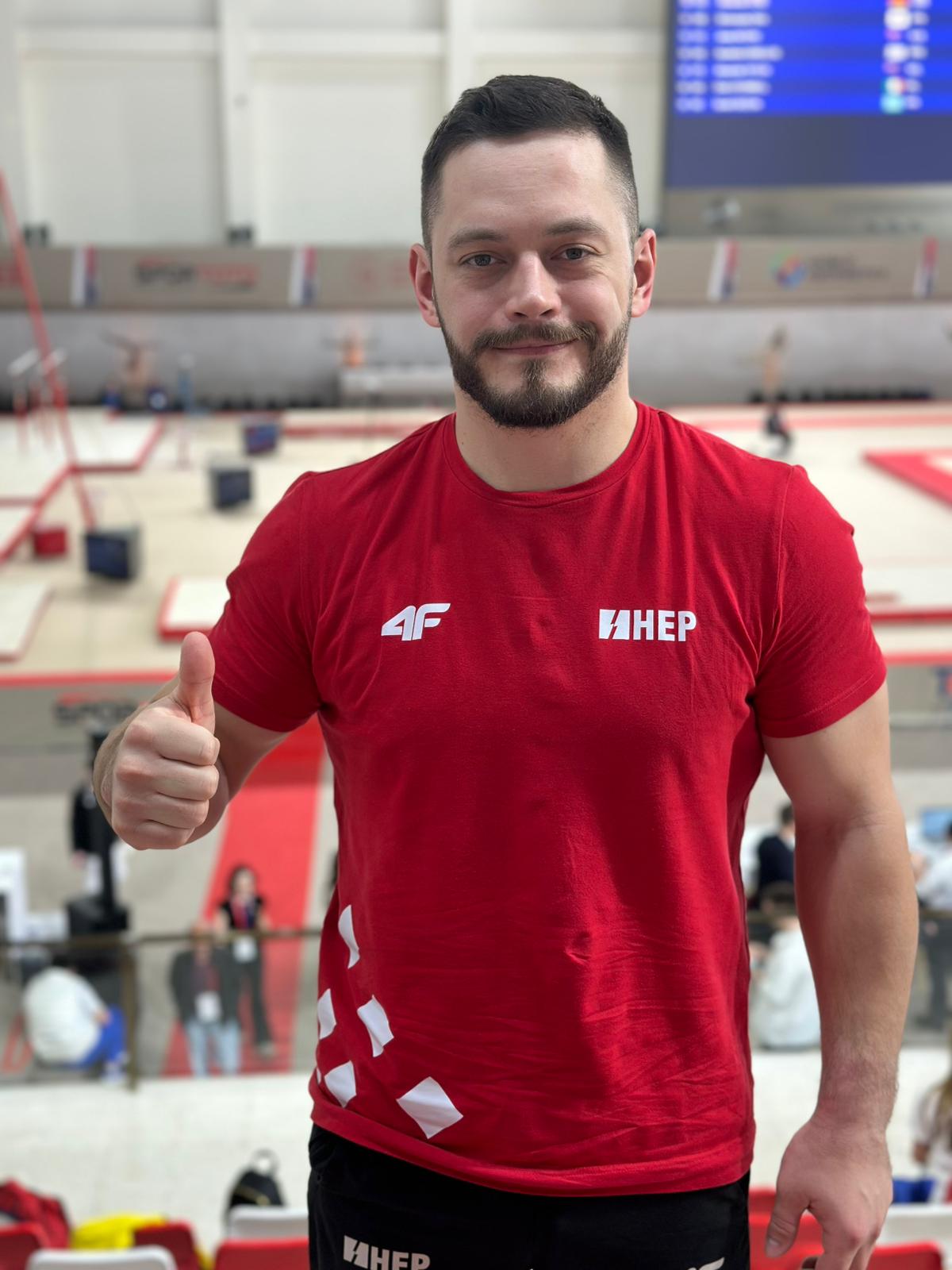 Danas je u svom sretnom gradu, gdje je 2023. postao prvak Europe, a prošle godine osvojio Svjetski kup, u kvalifikacijama preče zauzeo 6. mjesto s ocjenom 13.600 (start 5.5). Bila bi ocjena i viša da nije imao nešto veći iskorak na doskoku.