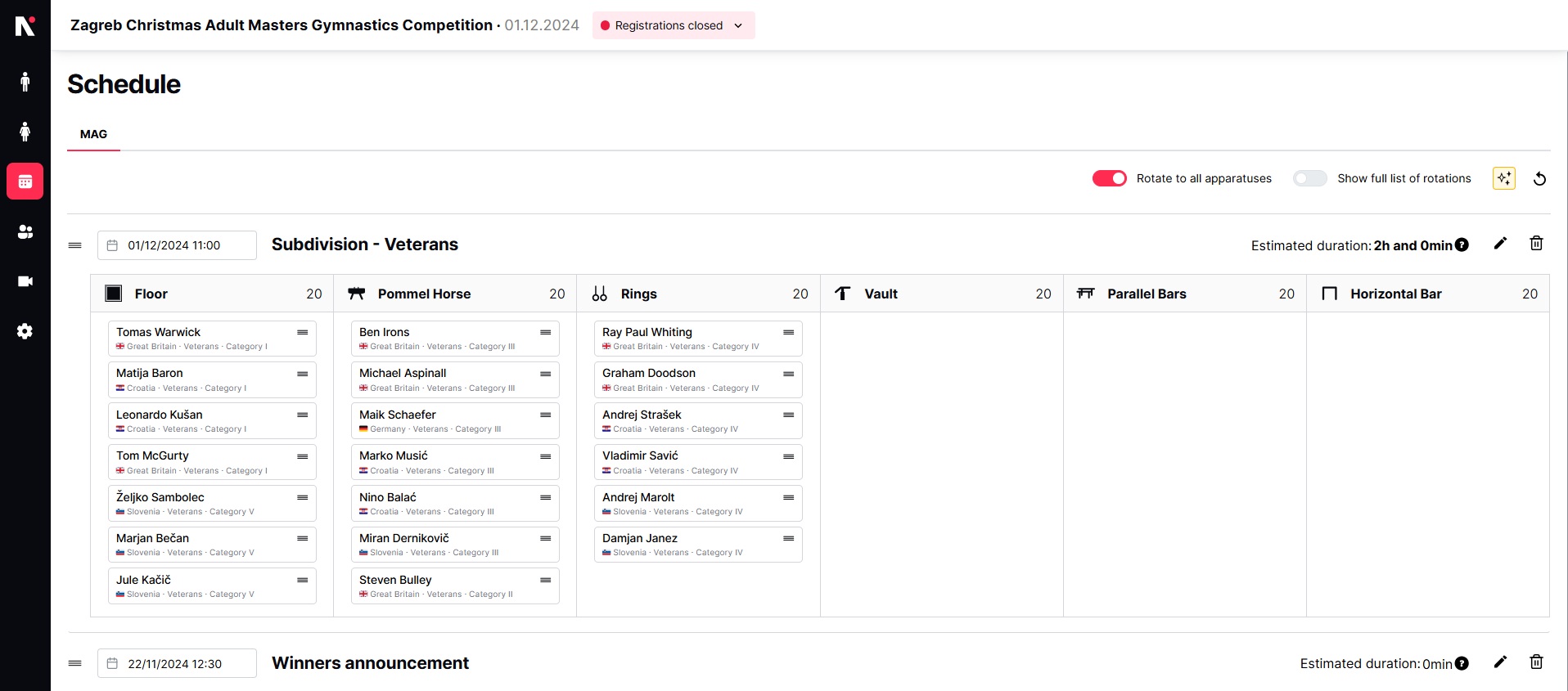 Zagreb Christmas Adult Masters Gymnastics Competition Stjepan Boltižar Memorial 2024