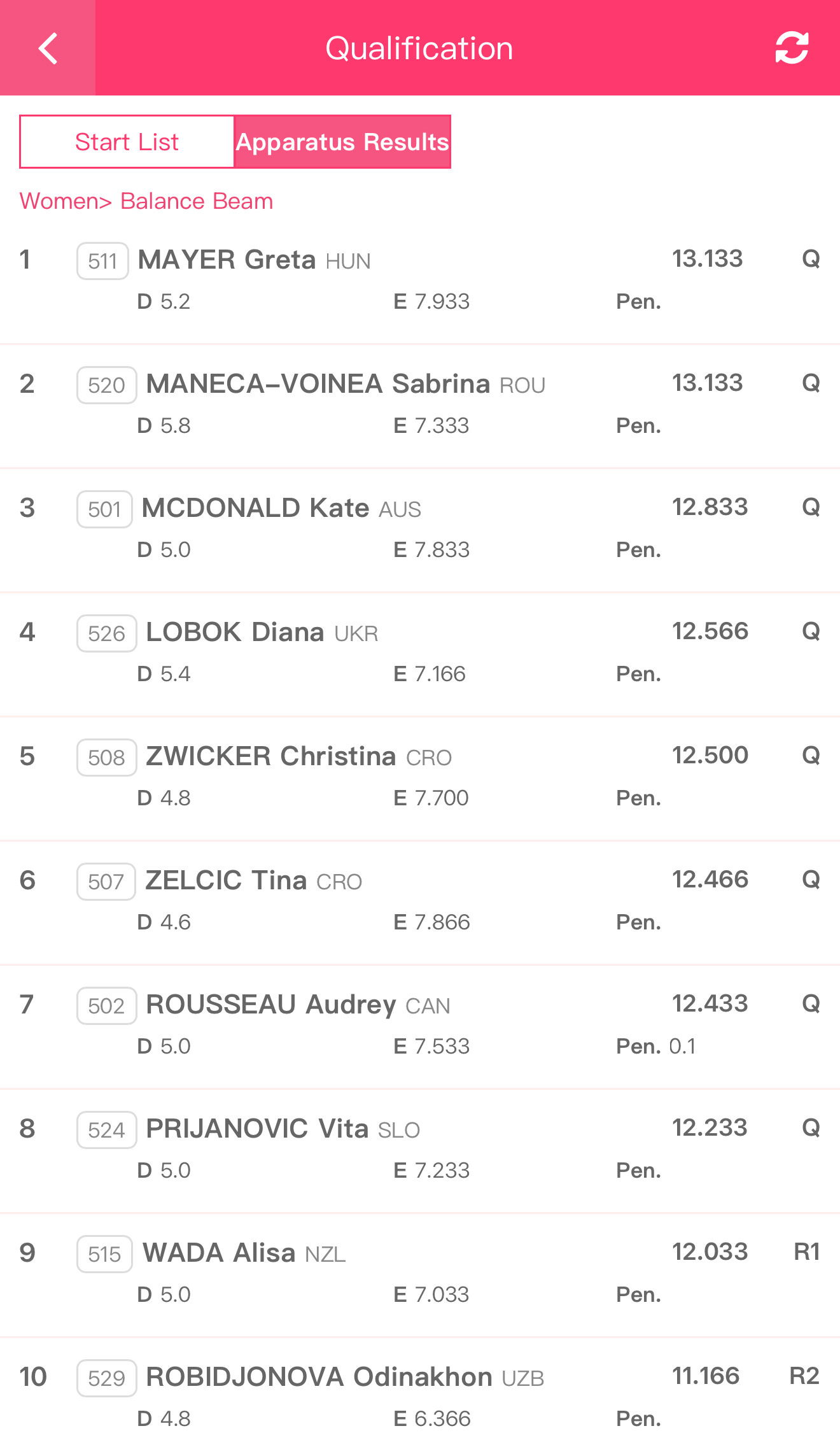 Christina je plasman u finale izborila 5. ocjenom kvalifikacija (12.500), dok je Tina bila 6. sa 12.466.